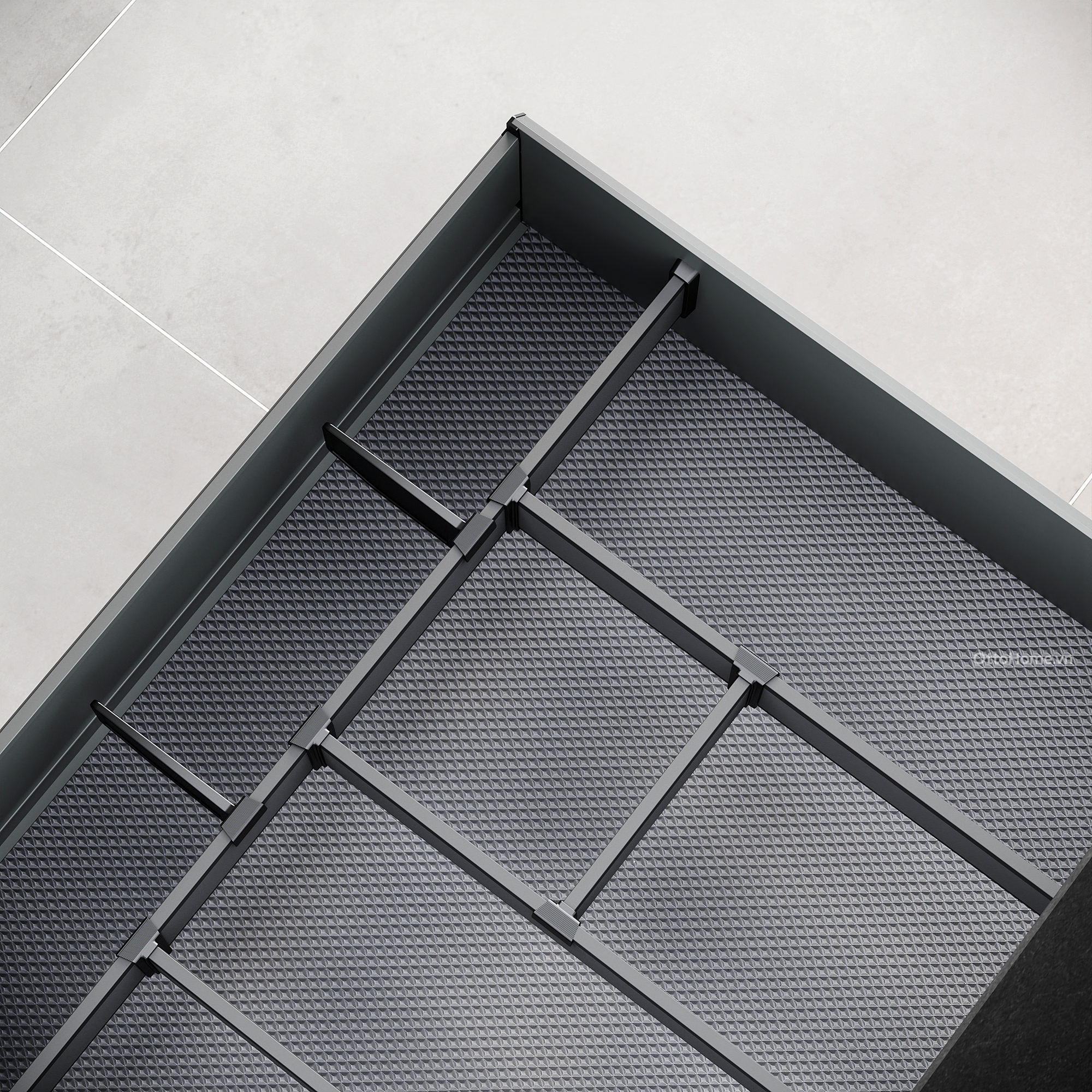 Điểm yếu của các loại giá xoong chảo inox nan thông thường là làm xoong nồi dễ bị xê dịch và tạo ra tiếng ồn kim loại khó chịu. Với ngăn kéo xoong chảo Goldmine HH-255, mọi thứ thay đổi hoàn toàn nhờ tấm lót Hettich.