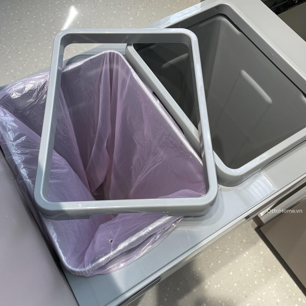 Phần khung nhựa phía trên giúp giữ túi rác luôn cố định, không bị tuột hay làm lộ mép túi ra ngoài, đảm bảo sự gọn gàng tuyệt đối.